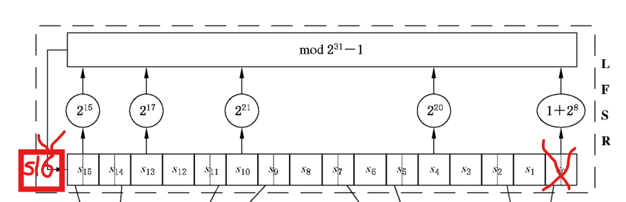 Galois域 GF(2^31-1)上的运算(与31位寄存器对应),保证了LFSR能达到最大周期。