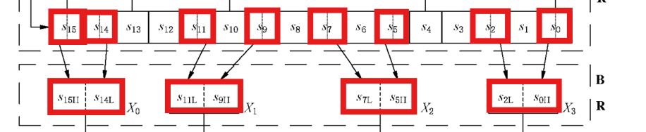 接着我们来看预处理阶段最重要的密钥装入部分,在算法标准结构图中,也就是将原本空的s0-s15装入内容: